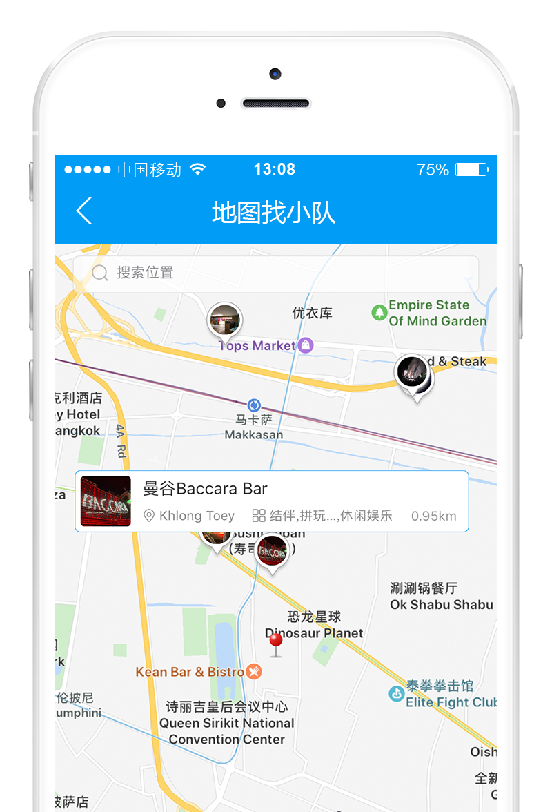 用户可以直接通过拖动地图,快速查看并且加入相关位置的小队